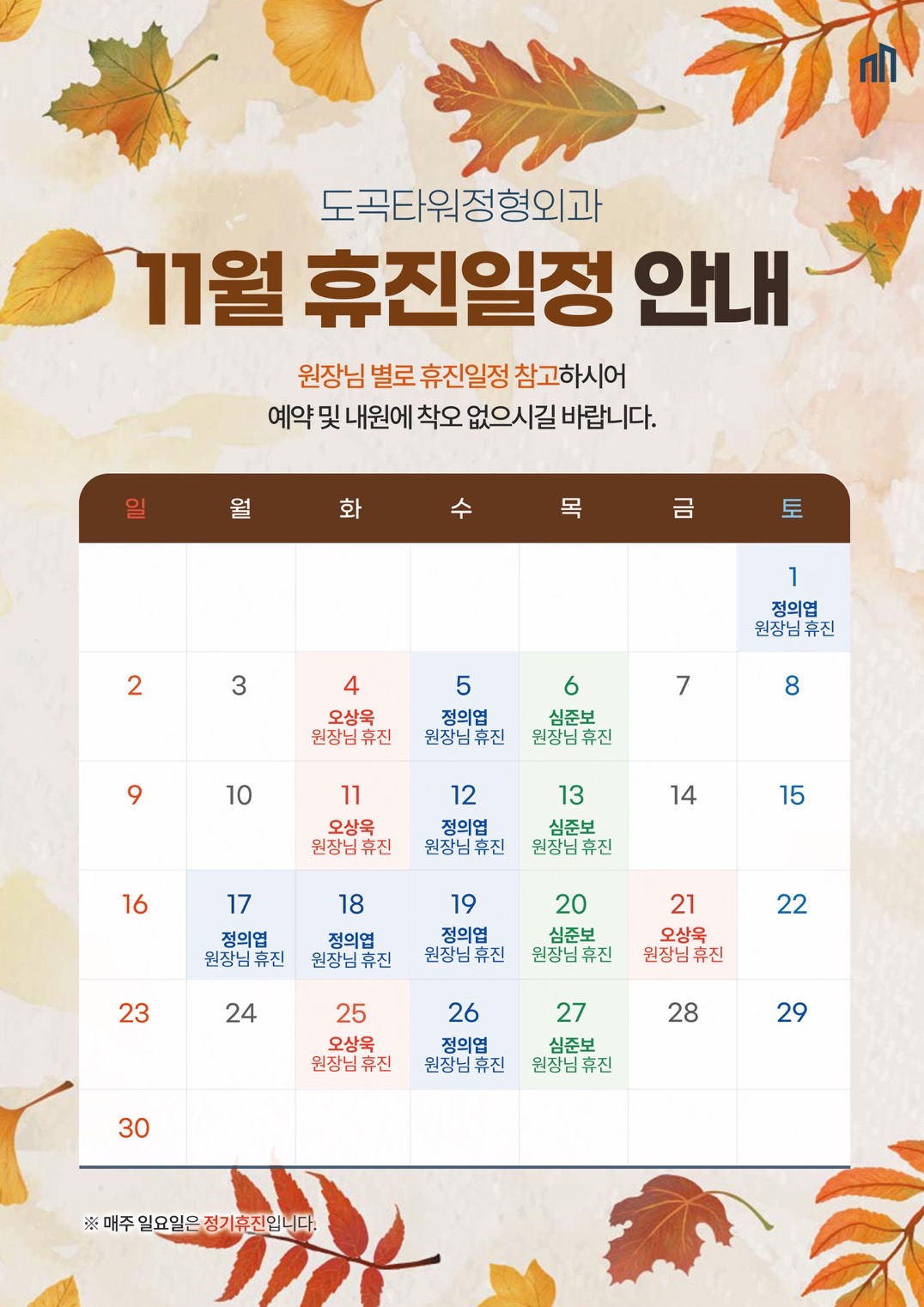 공휴일은 더 나은 진료를 위해 휴진합니다.