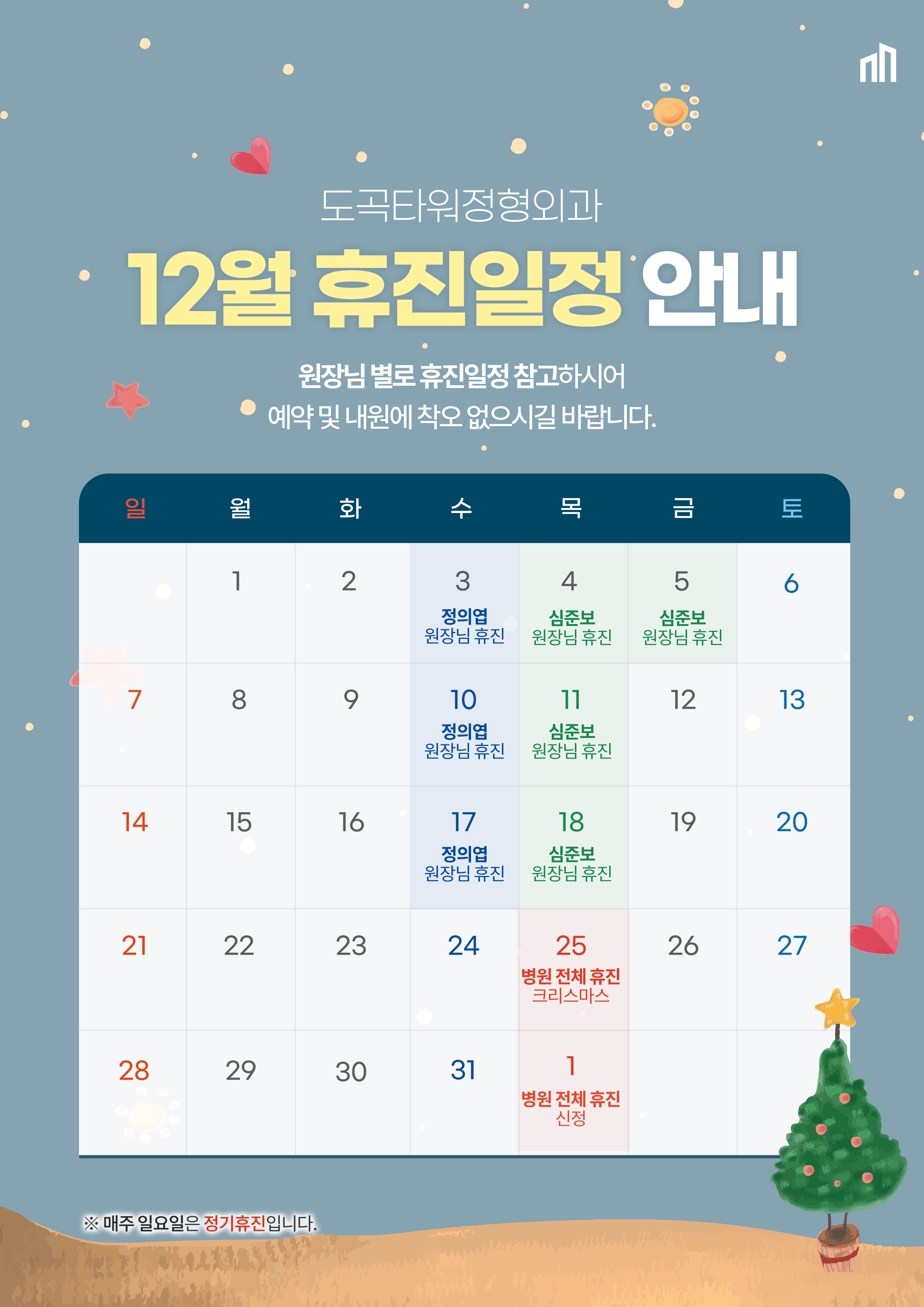 공휴일은 더 나은 진료를 위해 휴진합니다.